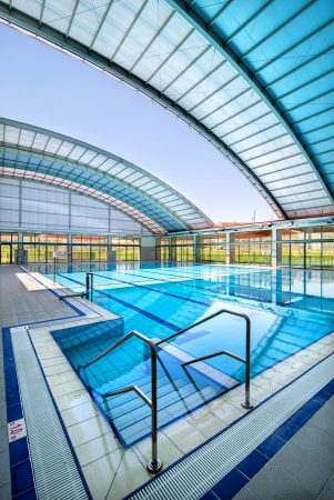 בריכת השחיה המרכזית של עיר הבה"דים בנגב. הבריכה מחוממת, מקורה אך ניתן לפתוח את הגג.